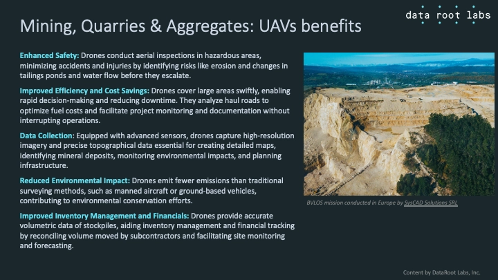 UAVs have become a staple in mining operations. The Drone for Mining Market was worth $1.18B in 2023 and is expected to reach $5.54B by 2030, with a projected CAGR of 22.6% from 2024 to 2030.